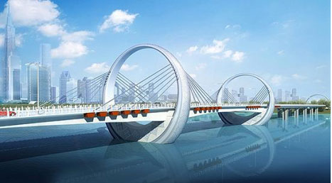 紅壁巖大橋設(shè)計理念——玉璧連環(huán)(全橋首座鋼圓環(huán)主塔斜拉橋)